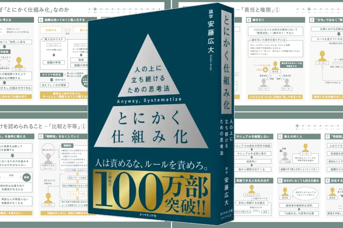 大好評『リーダーの仮面』。『数値化の鬼』に続く代表取締役安藤の著書『とにかく仕組み化』を図解にしました。
